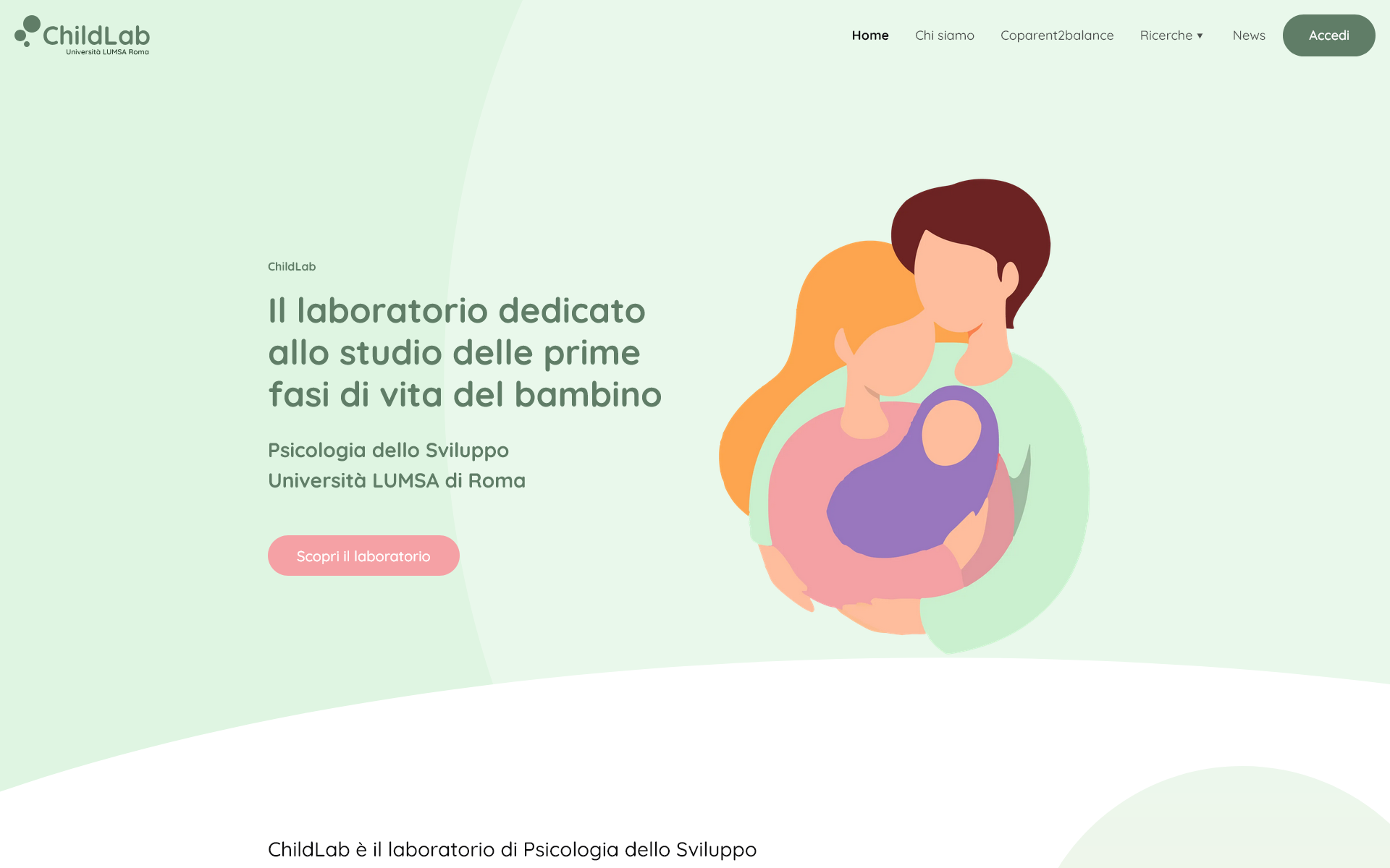 ChildLab è un progetto promosso dall’Università LUMSA in collaborazione con il Centro Studi Hansel e Gretel e l’Associazione GeA Genitori Ancora. Nasce con l’obiettivo di accompagnare le coppie nel percorso verso la genitorialità, offrendo strumenti di riflessione, dialogo e consapevolezza. Attraverso un approccio psicologico e relazionale, ChildLab propone attività interattive, contenuti formativi e un sistema di quiz pensato per stimolare il confronto e la crescita condivisa. Il progetto si rivolge a chi desidera esplorare il significato profondo dell’essere genitori, con attenzione alle dinamiche affettive, educative e interculturali.