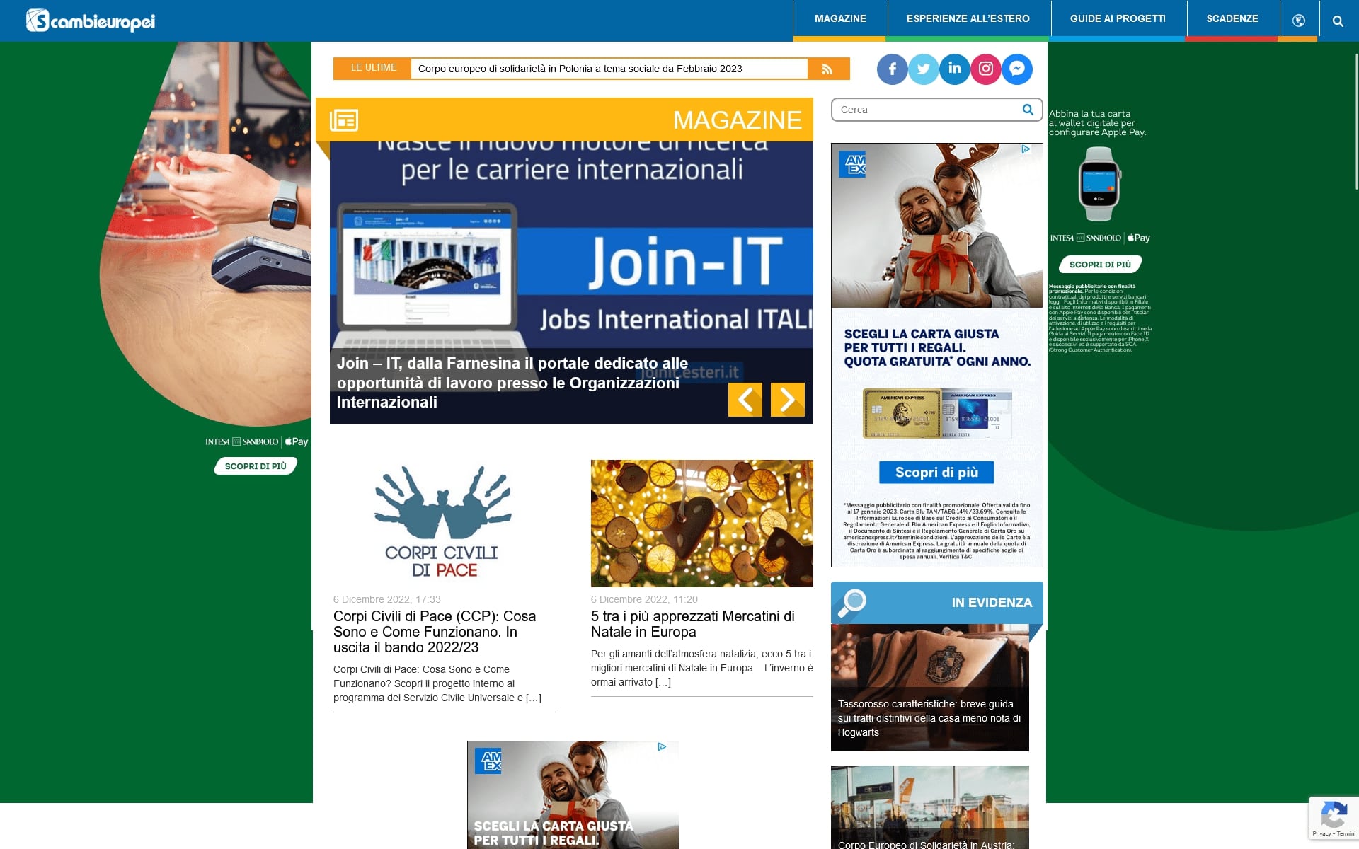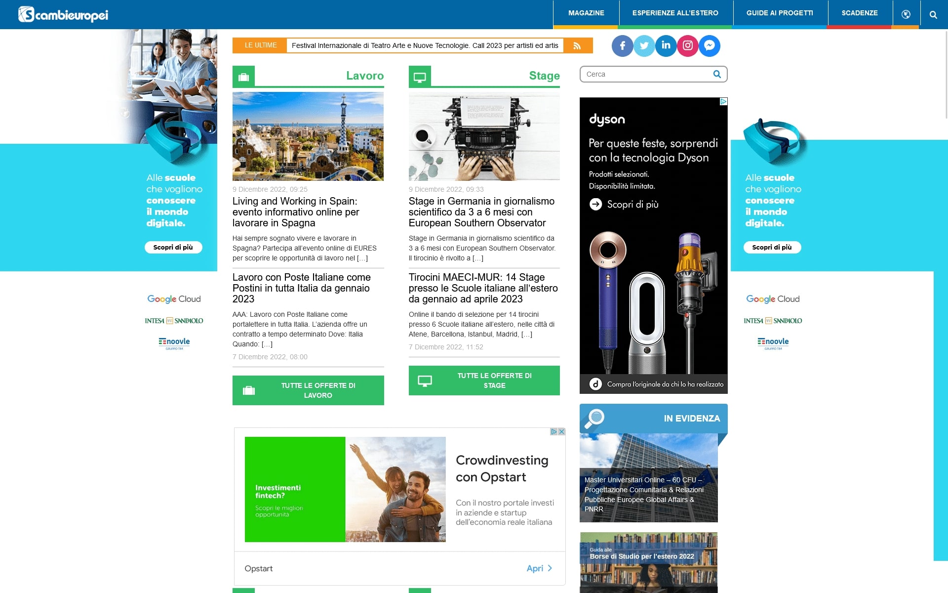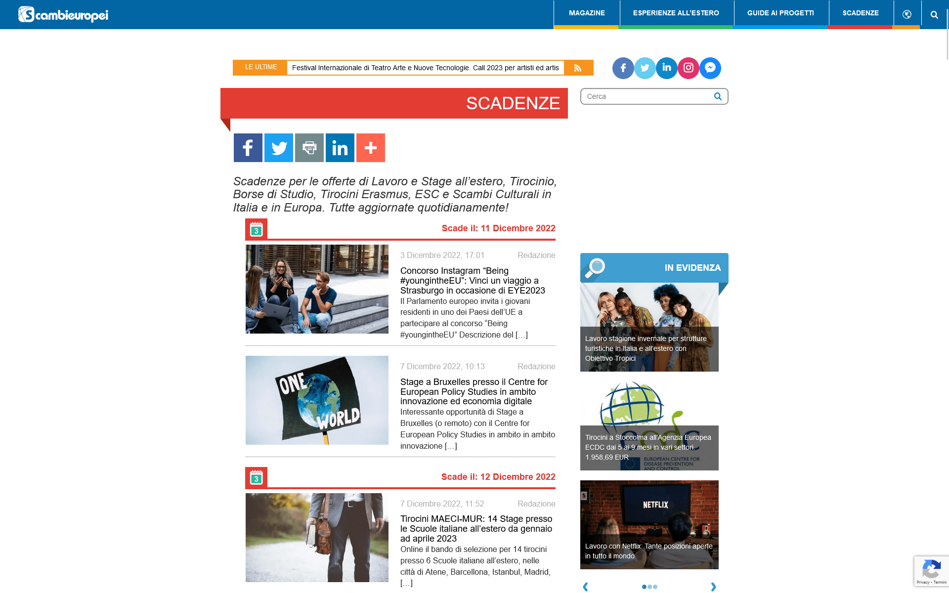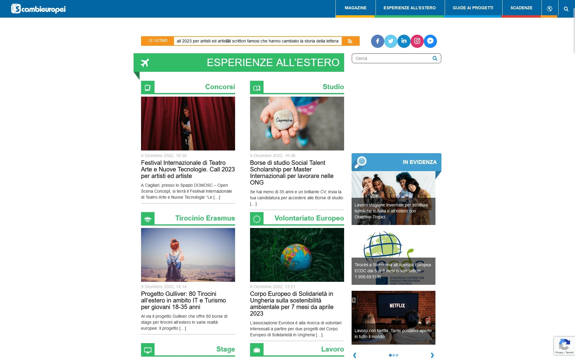 Scambieuropei è un sito web realizzato dall’omonima associazione nata nel 2008 il cui scopo è pubblicare online offerte di mobilità all’estero per studenti (tra cui i cosiddetti progetti “Erasmus”)